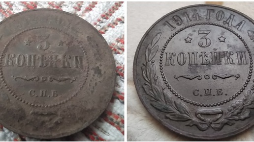 Монета 3 копейки 1914 года после "помывки". Сколько она может стоить