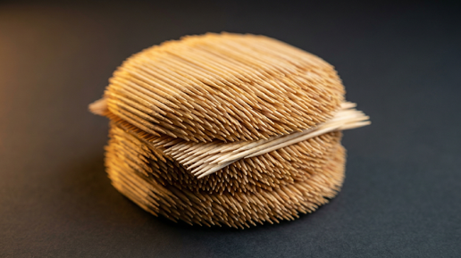 Обычный бургер весит 300 граммов. Бургер из зубочисток — 1,426 граммов, почти в пять раз тяжелее. Угадайте: сколько зубочисток поместится в один бургер? 🅰️ Около 400