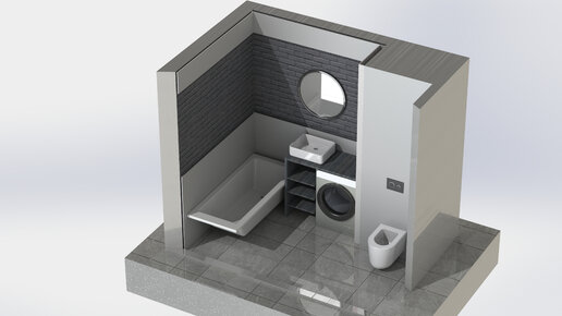 Безо всяких там "Скилбоксов" и "Гикбрейнсов". При помощи программ которые вообще не предназначены для разработки дизайна и строительства. Используя Solidworks и Компас-3D - инженерные программы для черчения и моделирования, муж сделал довольно неплохой дизайн ванной комнаты. Пост написан при его полной поддержке и консультации :) Мы еще не делились с вами опытом, как нам не повезло с дизайнером, но об этом как-нибудь позже. В общем, пришлось пересчитывать площадь всей ванной комнаты и заново переносить стояк горячей воды под новый замер...