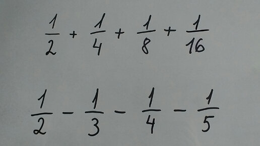 1/2 + 1/4 + 1/8 + 1/16 1/2 - 1/4 - 1/8 - 1/16 1/3 + 1/9 + 1/27 + 1/81 1/3 - 1/9 - 1/27 - 1/81 1/5 + 1/25 + 1/125 + 1/625 1/5 - 1/25 - 1/125 - 1/625 1/10 + 1/100 + 1/1000 1/10 - 1/100 - 1/1000 ** 1/2 + 1/3 + 1/4 + 1/5 + 1/6 1/2 - 1/3 - 1/4 - 1/5 - 1/6 1/2 + 2/3...