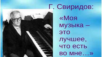 Конечно! Георгий Васильевич Свиридов - композитор с уникальной судьбой и мощным , узнаваемым стилем.Он родился в маленьком городке Фатеж курской губернии, и его первым музыкальным инструментом был обыкновенный баян. Он самостоятельно научился на нём играть и импровизировать. Только в возрасте 9- ти лет переехав в Курск , он впервые увидел рояль. Эта народная, баянная основа навсегда останется в его музыке. Со временем он стал студентом Ленинградской консерватории и учился у самого Дмитрия...