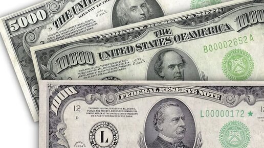 500, 1000, 5000 и 100 000 долларов — самые крупные и редкие купюры американской валюты