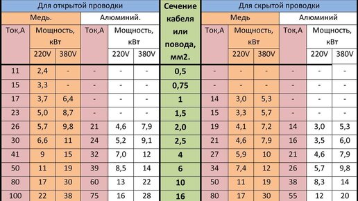 Переводим сечение кабеля в киловатты нагрузки. Сколько выдержит нагрузки в кВт кабель 1,5-2,5-4-6 мм²