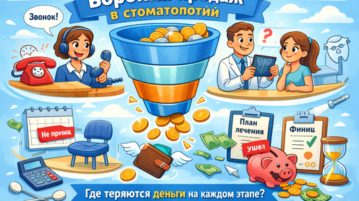 Воронка продаж в стоматологии — от первичного звонка до завершения лечения — где теряются деньги на каждом этапе