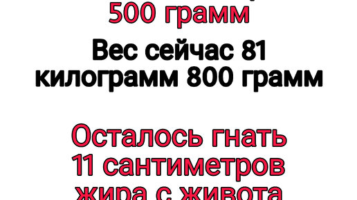Здравствуйте. Утреннее взвешивание показало 81 килограмм 800 грамм. Начинал худеть 90 дней тому назад со 103 килограмм 300 грамм. Это не конец. Буду продолжать худеть до тех пор пока моя талия не достигнет в объёме 86 сантиметров. Сейчас 97. В каждой своей публикации я делаю упор на то, что гоняю вес не с помощью дефицита калорий, а с помощью спортивных упражнений. То есть, чем больше я потею на тренировках, тем больше я могу покушать. Я, кстати, калории, белки, жиры и углеводы не считаю. Я считаю,...