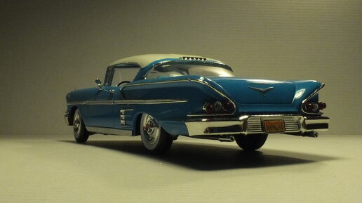 В предыдущих своих публикациях, ("Горячий и сладкий" часть 1и2) я рассказал об эволюции марки Шевроле Бель Аир с 1950 по 1957 год, представленной в пластиковых моделях от фирм Monogram, Revell и АМТ. Сегодня в моём Гараже На Полке мы увидим дальнейшее развитие семейства Бель Аир и чем это... не закончилось. В 1958 году, под слоганом "Роскошный автомобиль, доступный для каждого жителя Америки" был представлен в новой комплектации и дизайне от Эдда Коула - Шевроле Бель Аир Импала. Давайте посмотрим на него...