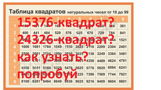 Тест. Что можно заметить в таблице квадратов. Как узнать: это квадрат числа, или нет