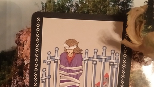 Здравствуйте! Картой дня сегодня становится 8 мечей, изображающая связанную женскую фигуру с повязкой на глазах. Вокруг нее в земле воткнуты острые мечи, под ногами вода – и это может создавать ощущение, что человек находится в достаточно проблемной ситуации и нуждается в том, чтобы его спасли. Где-то вдалеке виднеется замок на холме, который может символизировать защиту и поддержку, но есть ли смысл терпеть и ждать столько времени, в надежде, что кто-то заметит ваше бедственное положение и придет...