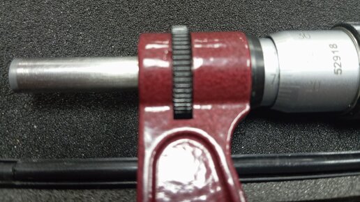 Микрометры бывают разных марок, соответственно калибровка отличается из-за конструктивных особенностей. На этом микрометре фиксатор выполнен в виде поперечной затяжной шайбы. Микровинт фиксируется поворотом шайбы. Трещотка - черный пластиковый барабан с насечкой. Калибровка производится шестигранником, он устанавливается в гнездо на барабане. На микрометре этого типа видим 2 отверстия, одно отверстие для регулировки специальным ключом...