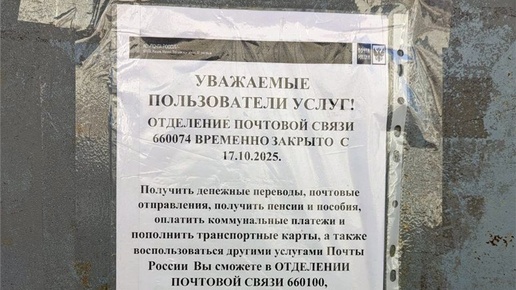 В красноярском Студгородке закрылось почтовое отделение