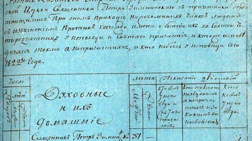 Государственный исторический архив Чувашской Республики. Фонд № 225, опись № 7, дело № 43. Стр. 118 скан. Подана августа 7 дня 1822 года. Роспись Казанской Епархии города Чебоксар Христорождественской церкви священника Петра Зимнинского с причетники обретающимися при оном приходе нижеявленных чинов людем со изъяснением против коегождо имени о бытии их во Святую Четыредесятницу у исповеди...