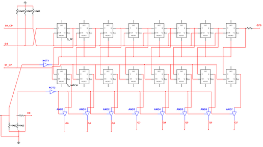 74HC595 — 8-разрядный сдвиговый регистр с последовательным вводом, с триггером-защёлкой и тремя состояниями на выходе. При этом несколько таких регистров можно объединять последовательно для масштабирования. Вот схема этого устройства: Работает регистр так: Кратковренный импульс на SH_CP записывает состояние DS в регистр. Чтобы обновить выходы Q0-Q7 нужно подать кратковременный импульс на ST_CP. Чтобы выключить выходы нужно подать высокий уровень (единицу) на OE. Чтобы обратно включить выходы нужно перестать подавать ток на OE (третье состояние выходов)...