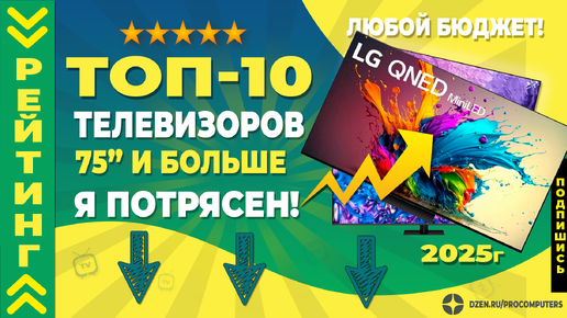 Обзор 5 телевизоров 75 дюймов ✅ ТОП 2025 года