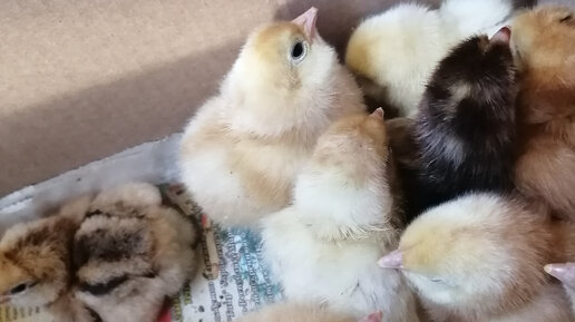 Приветствую всех кто нашёл время и заглянул! Понятно, что пора жаркая, посадки и не до Дзена сейчас многим. Но тем не менее, пишу. Вот на фото наш неудачный вывод. Из тридцати яиц только девять цыпляток. Старый петух все же не зря был отправлен в бульон. Молодому теперь раздолье. Цыпухи такие смешные. Они жёлтый, другой оранжевый, третий темно коричневый и ещё в полоску есть. Да, нас мало, но мы банда. И подозреваю что эта банда в основном петушиная будет. Во какой толстощекий. Милашки такие...