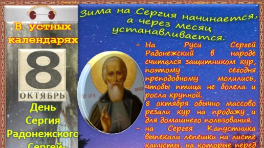 8 октября - Приметы, обычаи и ритуалы, традиции и поверья дня. Все праздники дня во всех календарях.