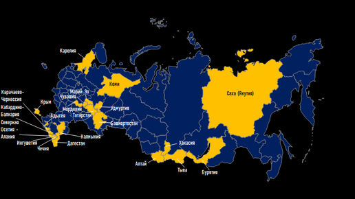 В составе России 22 национальные республики. 30 самых больших городов национальных республик