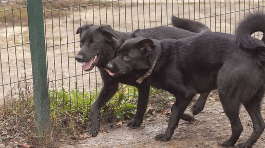 Их зовут Вульф и Таир, большие-маленькие пёсо-дети и они совсем недавно оказались в приюте, примерно пару месяцев назад. Эти ребята ещё только учатся быть хорошими собаками, хотя сами искренне верят, что они уже самые лучшие. ▌ Как выглядят наши герои? Вульф и Таир — настоящие красавцы. Оба черные, крупные, статные и юные (нет ещё года). Но внешность обманчива: внутри каждого из них скрывается огромный внутренний ребёнок, который обожает исследовать мир и познавать новое. Они осторожничают перед вещами, которых не понимают, но моментально забывают обо всём, когда видят что-то интересное...
