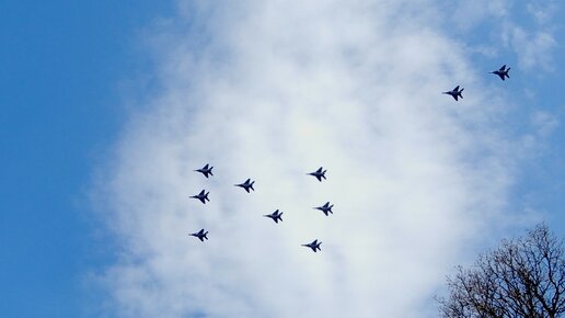 Парад победы прошёл без воздушной части и москвичи, а точнее остальная Россия не увидела обещанного воздушного шоу. Любопытные москвичи видели репетицию воздушного парада, так что имели представление о его грандиозном характере. Да и я имел представление о его части. Той части, которая начиналась с близлежащего аэродрома. 7 мая была генеральная репетиция и пролетающие самолеты сотрясали воздух ревом своих турбин. Кое-что удалось даже заснять, но, как это иногда бывает, после пары снимков на экране загорелось «батарея разряжена» и фотосессия закончилась...