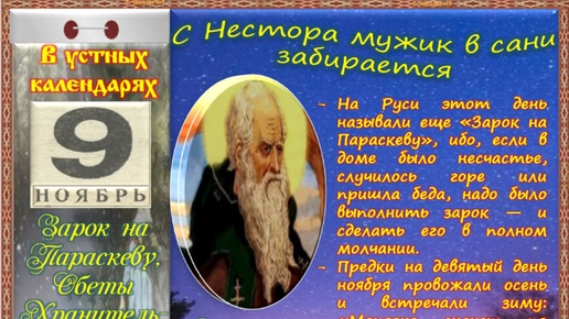 9 ноября - Приметы, обычаи и ритуалы, традиции и поверья дня. Все праздники дня во всех календарях.