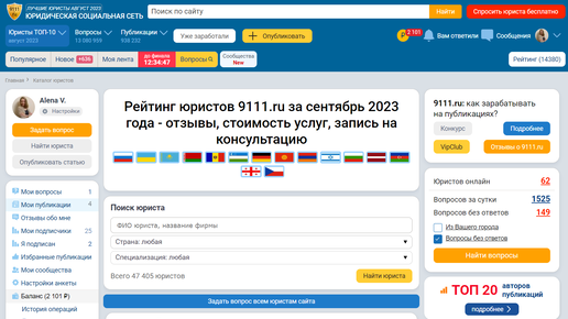 Хай, гайс! О сайте 9111.ru (который позиционирует себя как юридическая соцсеть) я наслышана уже больше года. В прошлом августе зарегистрировалась там по партнерской ссылке, чтобы получить халявные 500 рублей (реально начисляют). Но я не стала спешить с активностью там, решив просто присмотреться к сервису, почитать разные о нем отзывы. И вот почти на год я совершенно о нем забыла, лишь недавно переворошила свои старые закладки в поисках площадки, куда можно накидать контента. Забегая вперед скажу, что заработать там реально можно...