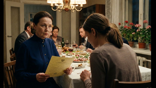 Свекровь встала. Стул отъехал назад, скрипнув по паркету, и этот звук прорезал застольный гомон, как нож – масло. Все замолчали. – Я знала, – сказала Тамара Евгеньевна. Голос ровный, низкий, без единого перепада. – Я знала, что ты не та, за кого себя выдаёшь. Она смотрела на меня. Только на меня. Двенадцать человек за столом, а она смотрела так, будто мы были одни. И достала из сумочки бумагу. Я не помню, как перестала дышать. Помню только, что пальцы сжали край скатерти – и не отпускали. Это конец, подумала я...
