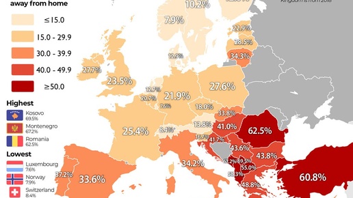 Какой процент граждан не может себе позволить отпуск вдали от дома? Интересно, что чем южнее, тем меньше возможностей
