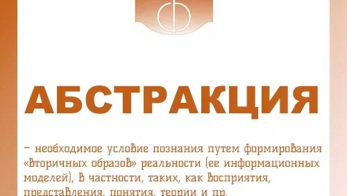 АБСТРАКЦИЯ (от лат. abstraho – отвлекать, исключать, отделять) – необходимое условие познания путем формирования «вторичных образов» реальности (ее информационных моделей), в частности, таких, как восприятия, представления, понятия, теории и пр. В процессе абстракции осуществляется выбор и обработка информации с целью заменить непосредственно данный эмпирический образ на другой, непосредственно не данный, но подразумеваемый и мыслимый как абстрактный объект и называемый обычно тем же термином «абстракция»...