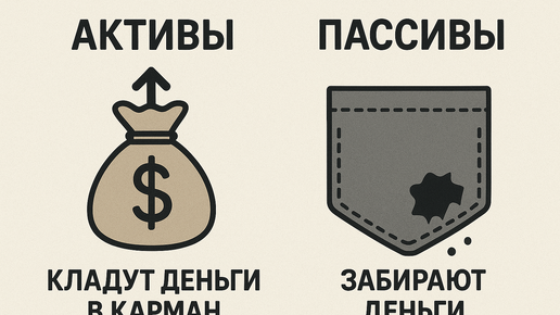 «Богатые покупают активы. Бедные — пассивы, называя их активами.» Ты можешь работать усердно, повышать доход, даже откладывать часть денег — но если ты путаешь активы и пассивы, то всё равно будешь бежать по кругу. Это как наливать воду в решето: вроде делаешь всё правильно, но результата нет. Сегодня ты разберёшься, что на самом деле делает людей богатыми, а что — просто создаёт иллюзию богатства. Что такое актив и пассив — просто и без академии 🔹 Актив — это то, что приносит тебе деньги. 🔹 Пассив — это то, что забирает у тебя деньги...