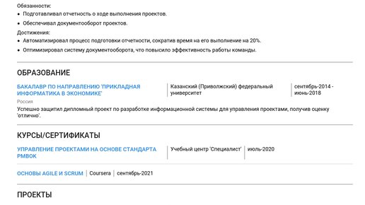 Изучите готовый пример резюме администратора IT-проектов, чтобы понять, как грамотно представить свой опыт и навыки. Создание эффективного резюме — ваш прямой путь к получению желаемой работы. ✨ На этой странице вы найдете подробное руководство о том, как составить резюме администратора IT-проектов с нуля. Мы предлагаем готовые примеры для начинающих и опытных специалистов, а также пошаговые инструкции по заполнению каждого раздела, включая Изучив пример, вы сможете создать резюме с помощью нашего конструктора резюме...