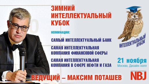 Вы смотрели телевизионную игру «Что? Где? Когда?», хотите оказаться в кресле знатока и найти ответ на вопрос за одну минуту? Приглашаем Вас принять участие в Зимнем Интеллектуальном Кубке в трех номинациях «Самая интеллектуальная компания в финансовой сфере» и «Самый интеллектуальный банк» и «Самая интеллектуальная компания в сфере ТЭК, нефти и газа». Ведущий – магистр игры «Что? Где? Когда?», обладатель четырех Хрустальных сов МАКСИМ ПОТАШЕВ. Интеллектуальный Кубок – это аналог известной телевизионной игры «Что? Где? Когда?»...