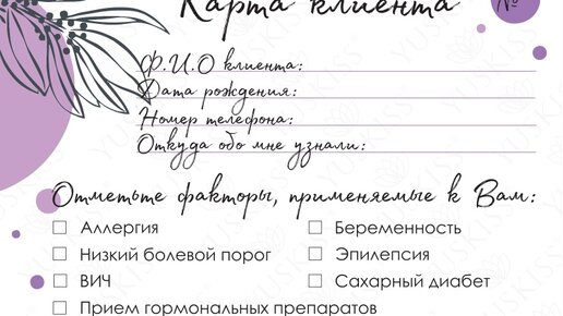 После моего посещения мастера, которого я нашла по объявлению с Авито на депиляции бёдер (об этом я рассказала в предыдущей статье и обязательно прикреплю на неё ссылку в конце), я захотела рассказать о необходимости вести Карту клиента. Считаю эту тему актуальной. Ниже на фото можно увидеть какую карту я даю заполнять своим клиентам👇: На обучении технолог Елена подробно объясняла мне все этапы проведения депиляции и отдельной темой была карта клиента в шугаринге. Кому и для чего она нужна? Почему...