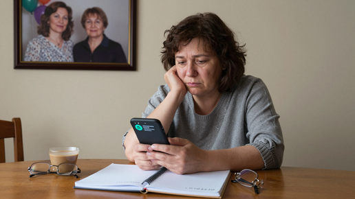 Уведомление пришло в восемь утра: «Перевод 45 000 ₽ выполнен успешно». Я смотрела на экран и пила остывший кофе. Двенадцатый год подряд — пятнадцатого числа — с моей карты уходили деньги на карту матери. Сорок пять тысяч. Автоплатёж. Как часы. Сорок пять тысяч — это моя квартплата, проездной, обеды на работе и ещё немного. Я обхожусь без немного. Уже привыкла. Телефон зазвонил через минуту после уведомления. Мать. Как будто ждала. – Лариса, деньги пришли. Спасибо. Но мне нужно с тобой поговорить...