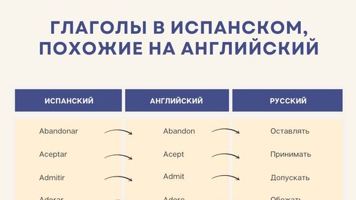 ¡Привет, amigo! Этот материал подготовлен онлайн-школой испанского Escuela. Переходи в наш Telegram, чтобы прокачать свой испанский 🧡 Сегодня собрали для вас глаголы, которые имеют схожесть с английским...
