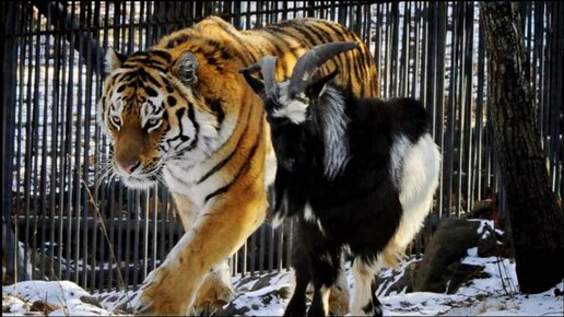 Здравствуйте уважаемые читатели. Наверное многие из вас помнят громкую новость, которая в 2015 году шумела во всех СМИ России: в одном из Приморских сафари-парков, амурский тигр по кличке Амур и домашний козел Тимур - подружились. Если кто-то не слышал об этой истории, то я вкратце ее перескажу: Все началось в ноябре 2015 года, когда в вольер к Амуру привели козла в качестве "обеда". Тигр был не особо голоден и поэтому не испытывал энтузиазма по отношению к жертве, а когда подошел ближе, козел даже проявил храбрость и выставил рога вперед...