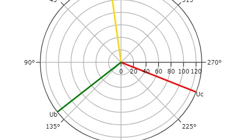 Для программы просмотра осциллограмм в формате COMTRADE добавлен функционал построения векторной диаграммы для аналоговых каналов. В панели инструментов добавлена новая кнопка , при нажатии на которую справа отображается векторная диаграмма аналоговых каналов из осциллограммы. При повторном нажатии векторная диаграмма скрывается. Векторные измерения аналоговых каналов отображаются в тех величинах, в которых они представлены в осциллограмме. По умолчанию векторная диаграмма строится только для первых 3 аналоговых каналов (рис...