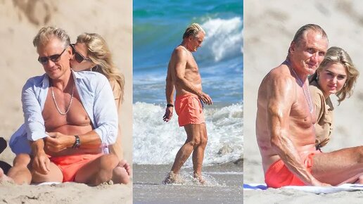 Согретый солнцем Дольф Лундгрен со своей невестой на 38 лет вышли на пляж Малибу. Хорошенькая парочка?