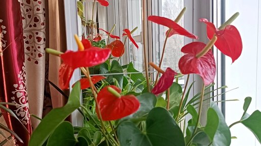 Всем доброго времени суток. Сегодня поговорим об антуриуме. У меня удачный опыт выращивания этого растения, поэтому и решила с вами поделиться некоторыми особенностями ухода за ним. Появился он у меня 1,5 года назад и за это время цвел и увеличивал количество цветоносов и нарастил лиственную массу. К слову цветение длилось почти до нового цветения, без цветов растение стояло около 1,5 -2 месяцев и снова начало выпускать цветоносы. Из чего могу сделать вывод, что цветет вне зависимости от сезона круглый год...
