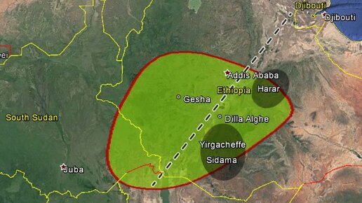 Итак, разновидности (или сорта) арабики – это типика, бурбон, катурра и прочие. Арабика появилась в результате естественного скрещивания робусты и эужениоидиса в области, расположенной на севере Кении, юго-западе Эфиопии и юго-востоке Судана. Эфиопию пересекает Восточно-Африканская рифтовая долина, которая выглядит на карте страны как некий шрам, идущий справа сверху налево вниз. Чуть выше середины Долины находится столица страны, город Аддис-Абеба. Ниже середины – Иргачеффе и Сидама. Южнее Иргачеффе и Сидамы лежит север Кении, а к западу находится юго-восточный Судан...