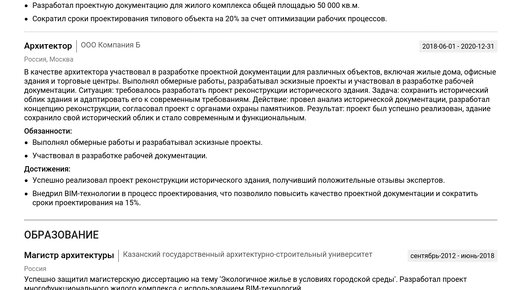 Пример резюме архитектора-проектировщика 2025 - руководство