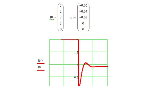 При расчете переходного процесса цепей постоянного или переменного тока, возникает необходимость в построении графика переходного процесса. Посмотрим, как это можно сделать, используя программу маткад. Начнем с самого простого примера. Рассчитаем цепь 1-го порядка с постоянным источником энергии и получим, например, следующий ответ (закон изменения напряжения): Зададим интервал времени, в котором и будет как то меняться кривая переходного процесса (ПП). Этот интервал считается от нуля до установившегося значения с некоторым шагом...