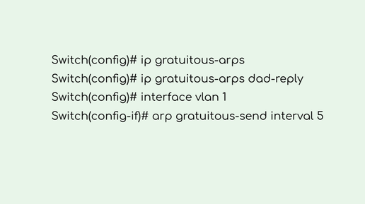 Gratuitous ARP — это так называемый «добровольный» случай запроса ARP: запрос собственного адреса IP. В таком запросе IP-адреса отправителя и получателя совпадают. Gratuitous ARP используется для: Для настройки Gratuitous ARP на коммутаторе D-Link со стандартным интерфейсом командной строки используются команды: Включение механизма Gratuitous ARP: Switch(config)# ip gratuitous-arps Включение обнаружения дублирования IP-адресов: Switch(config)# ip gratuitous-arps dad-reply Настройка...