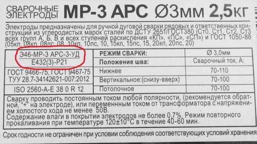Расшифровка маркировки электродов. Пример.