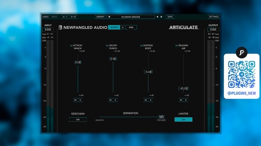Articulate | транзиент шейпер Разработчик: Newfangled Audio Версия: 1.0.2 Формат: VST3 Разрядность: 64bit Таблэтка: Присутствует Системные требования: win 10+ Размер: 12 MB Вступай в братство плагинов! Будь в курсе новых событий Скачать - тык Всё нужное в едином посте - тык Предложка|донат - тык Описание: Создавайте свою динамику: напрямую управляйте атакой (шлепок), замедлением (удар), сустейном (корпус) и выдохом (воздух). Улучшайте переходные моменты, усиливайте присутствие, повышайте четкость и контролируйте сустейн...