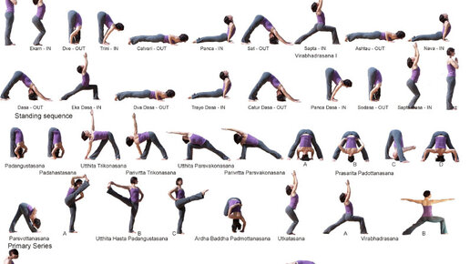 Аштанга-йога-виньяса — учение, в основе которого лежат два термина: «аштанга», означающий буквально «восемь ступеней» (установленный порядок уровней, по которым практикующие могут развиваться для достижения состояния йоги), и «виньяса», понимаемый как «дыхательно-двигательная система связанных упражнений». В «фитнес йоге» упор, как правило, делается именно на виньясы — логические связки асан, как бы «нанизанных» на «нить дыхания» (то есть позы объединяются в непрерывный поток с помощью особого способа дыхания, комплекса пранаям)...