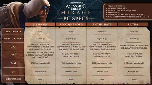 Специально для тех, кто хочет получить больше 100 FPS на мощном ПК или стабильные 60 FPS на слабом, мы подготовили этого руководство. В нем разберемся, как грамотно оптимизировать графику в новой игре от Ubisoft без ущерба качеству изображения. Какой компьютер нужен для Assassin’s Creed Mirage (системные требования) После выхода ПК-версии 5 октября в сети появилось много тестов Assassin’s Creed Mirage от разных источников. Мы изучили их и пришли к выводу, что официальные системные требования близки...
