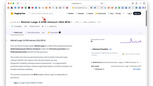 Недавно стала доступна для локальной установки новая ИИ от Французов.Мне не хватает всего лишь 1.35 терабайта памяти для запуска модели в формате BF16 :) Ожидается, что с квантизацией IQ4 модель уместится в 512 гигабайт. Но если у вас есть 1...
