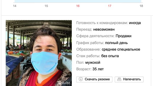 Привет друзья! Продолжение поиска ожидания работы в сфере овощей. Сегодня 4й день, на дворе 18 мая 2020 г. объявления на авито по резюме на вакансию продавцом овощей и фруктов рынок. (в Крыму сегодня послабления на карантин (бизнесам и людям дают послабления). В цифры к сожалению не вдавался, кто что может делать во время пандемии в нашем регионе – Это Крым Симферполь. Так как в разных регионах, разные механизмы работы во время вируса. Позже конечно в читаюсь по нашему региону, что и с чем у нас послабления...
