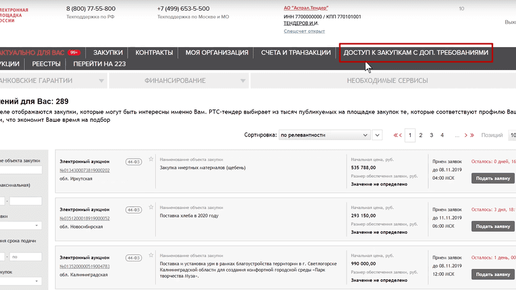 РТС Тендер - как участвовать в закупках с доп. требованиями