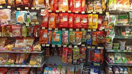 Один из феноменов азиатской культуры - магазины шаговой доступности. Я видела такие в Таиланде, Вьетнаме и Японии. Буквально через каждый квартал здесь расположены миниатюрные магазины местных сетей. В Таиланде это 7-Eleven, как и в Японии, где-то Spar или Family Mart. Магазинчики соответствуют своим названиям и работают круглосуточно. У них довольно специфический для нас ассортимент - здесь не найти овощей, молока и яиц, зато в разнообразии напитки, в том числе мой любимый холодный чай без добавок, соки, йогурты, быстроприготовимая лапша и снэки, сосиски и сладости, бытовые мелочи...