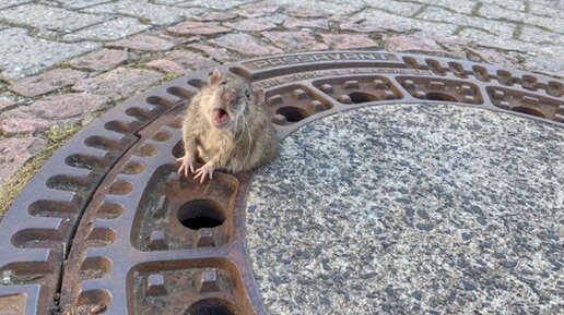 Эта толстая крыса застряла в люке. Крыса плакала и кричала о помощи. Сердобольные жители города вызвали спасателей животных. У этой бедной крысы половина тела застряла в люке в одном из городов Германии. Надо сказать, что грызун хорошо питался в канализации города. Организация, специализирующаяся на спасении животных, пыталась ему помочь. Но напрасно, так как зверь был слишком большим . В результате ассоциация позвала пожарных спасти бедную крысу. Пожарные пришли на помощь жирной, застрявшей в люке крысе ...